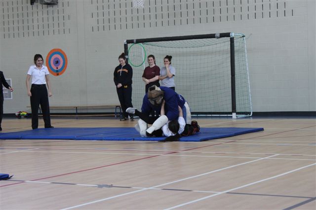 Vêtu d’un costume matelassé, bien équipé pour recevoir les coups simples, mais efficaces qu’il enseigne aux femmes, le professeur fait revivre le cauchemar des agressions.