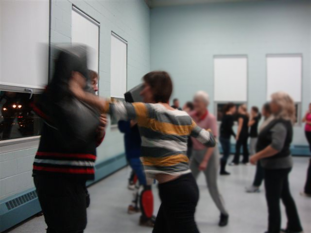 « Nous nous entraînons ensemble deux fois par semaine le jeudi et le samedi, en tout sept heures par semaine. Mon garçon de neuf ans se pratique avec les plus jeunes et ma fille de douze ans s’entraîne aux adultes avec moi (elle suit le même programme). Bien qu’exigeant, l’entraînement se fait dans un environnement ludique et sécuritaire afin que tous (petits et grands) puissent y trouver de l’agrément et le désir de s’améliorer. Nous suivons aussi des cours l’été avec un Senpai (élève senior, ceinture noire), un soir par semaine dans un parc. J’y vais avec mes enfants et des amis des enfants du Dojo.